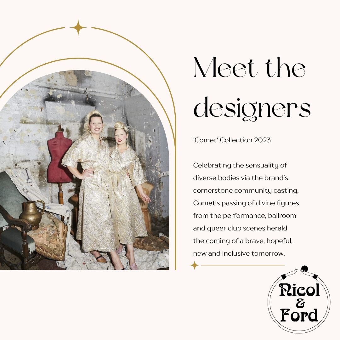 Introducing the extraordinary creation by So Pretty Nails and the visionary duo Katie-Louise and Lilian Nicol-Ford of Nicol & Ford, as seen on Australian Fashion Week 2023. Immerse yourself in the enchanting world of the 'Comet' Collection, a celebration of diverse bodies and a bold reimagining of the constrained silhouettes of the 1810s.